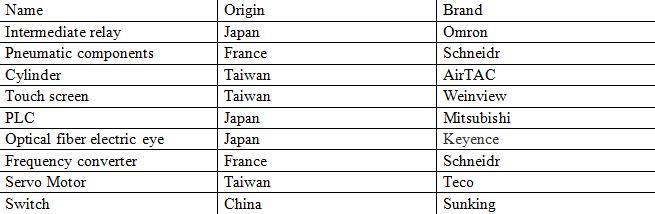 2) Die aanvaarding van gevorderde wêreldbekende handelsmerkonderdele in pneumatiese onderdele, elektriese onderdele en bedryfsonderdele.